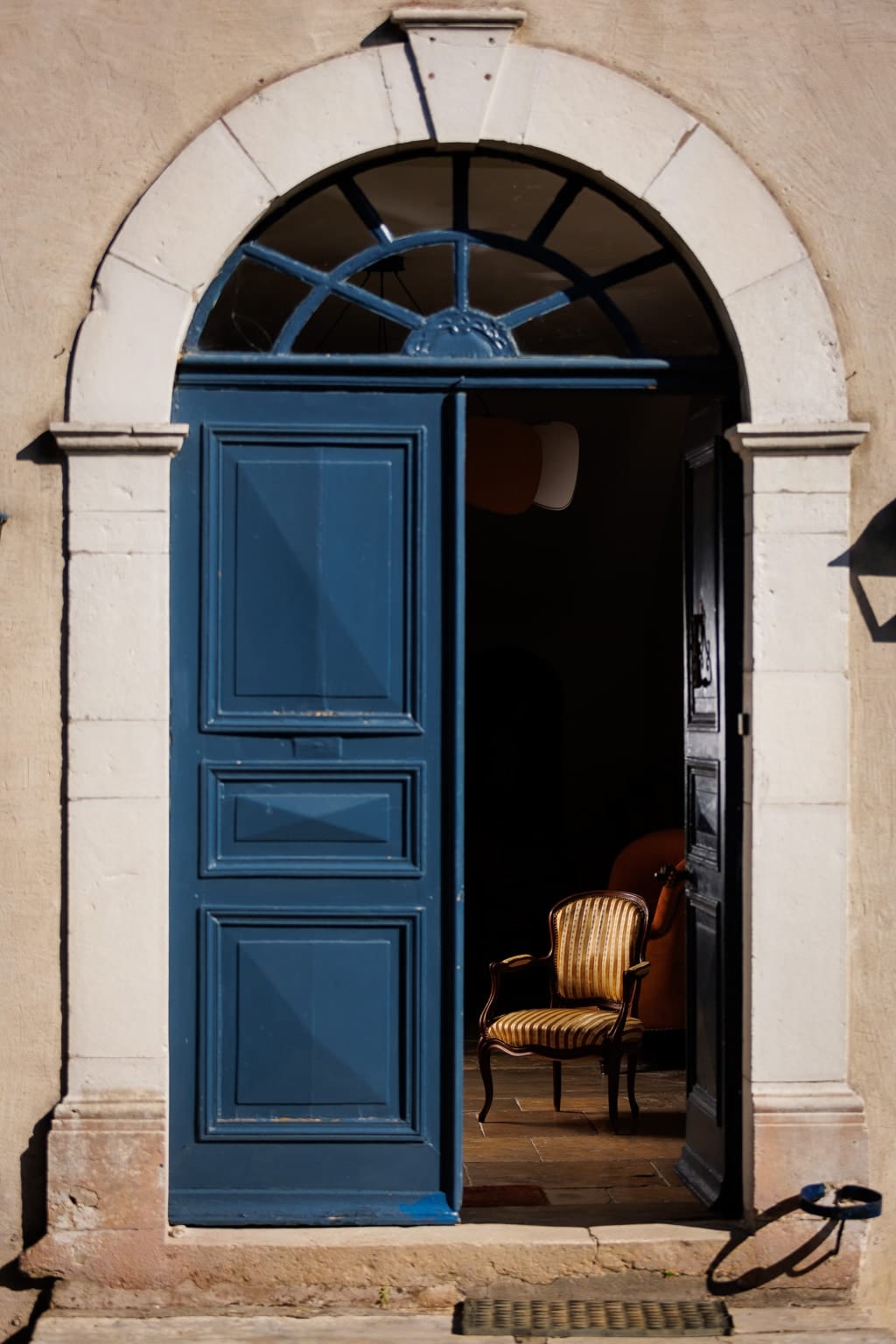 Notre hôte se sentira tout de suite coupé du monde, « à l’abri ». Tout y participe : l’épaisseur des murs, les dimensions des deux vantaux sublimés par un imposte vitré en forme de demi-lune. Le sol en pierres de taille d’origine patinées par le temps. On ressent sans pouvoir vraiment l’exprimer le caractère hospitalier des lieux.